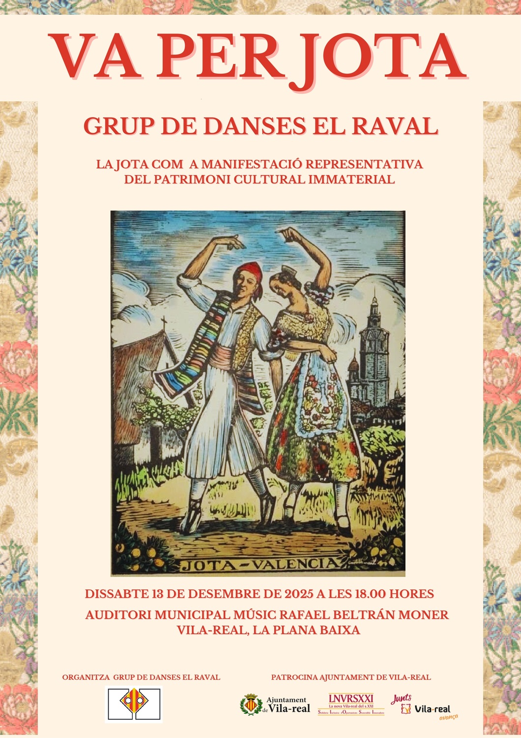 El sábado 13 de diciembre, a las 18.00 horas, tendrá lugar, en el Auditorio Municipal Músico Rafael Beltrán Moner, la actuación del Grupo de Danzas El Raval con el título Va per jota.