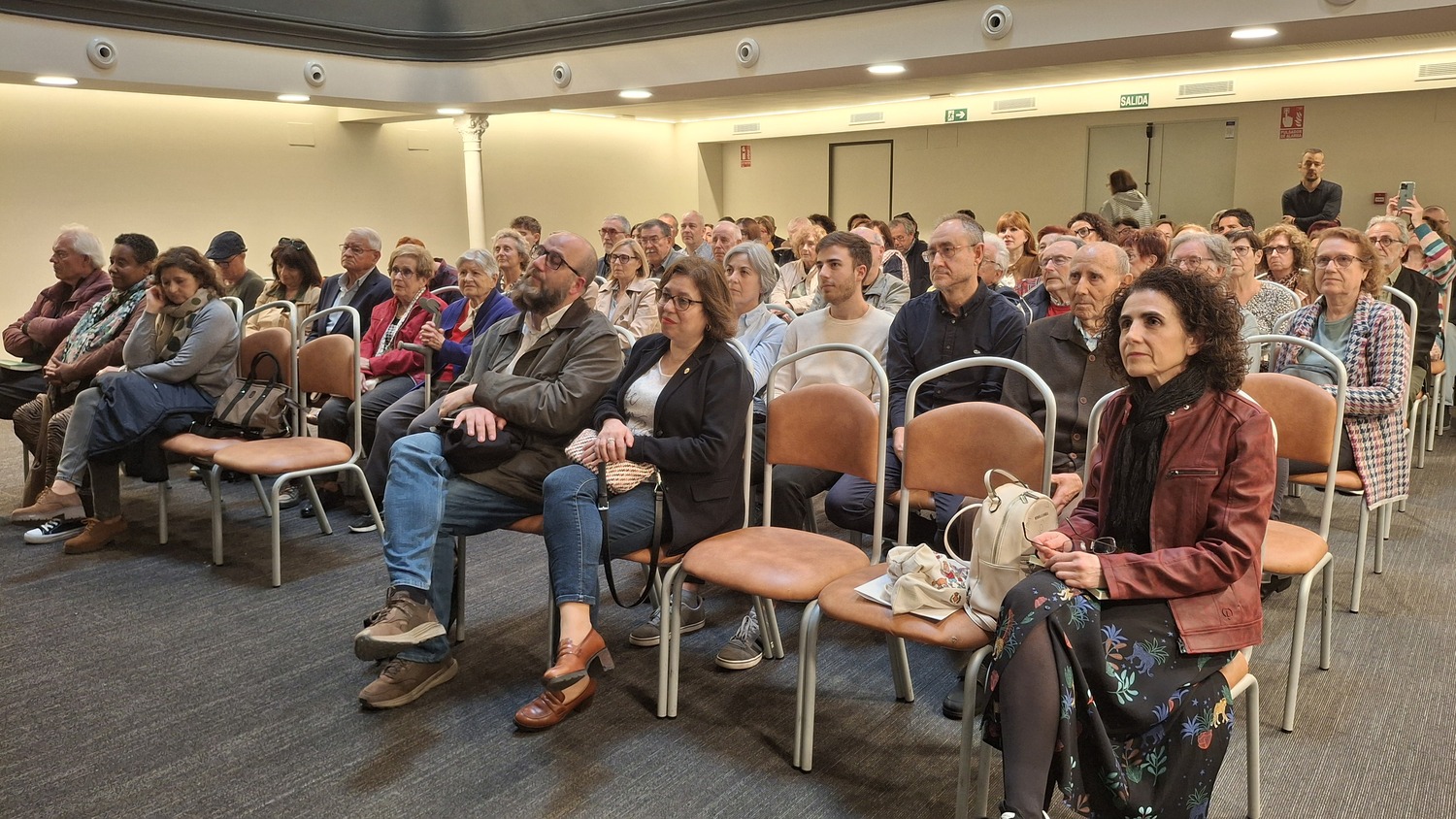 El Teatro Tagoba ha acogido la presentación de Les ferides del món, la última obra de Vicent Usó y que ha publicado la editorial Bromera. Susanna Lliberós, poeta y escritora de Vila-real, ha acompañado Usó en el escenario en este acto que llenó el teatro de amigos, familiares y lectores de Usó.