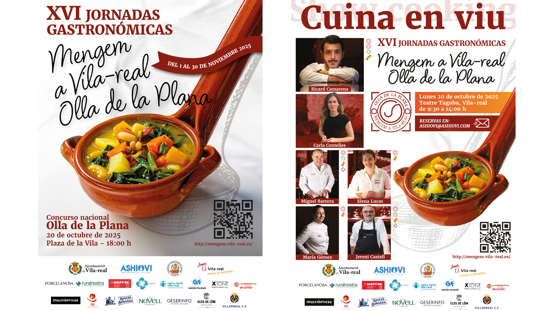 L'Ajuntament de Vila-real a través del regidor de Comerç i Hostaleria, Xus Madrigal: del president d'ASHIOVI (Associació d'Hostaleria i Oci de Vila-real), Emilio Miralles, i del president de l'Associació Gastronòmica Cultural de Vila-real, Ximo Abril, han presentat la programació per a la XVI edició de les Jornades Gastronòmiques Mengem a Vila-real... Olla de la Plana, que se celebraran de l'1 al 30 de novembre. L'esdeveniment, ja consolidat com una de les cites gastronòmiques més importants del calendari local, pretén fer valer la riquesa culinària de Vila-real i impulsar el sector hostaler de la ciutat a través de propostes que uneixen tradició, innovació i promoció econòmica. "Novembre, a Vila-real, torna a ser el mes de la gastronomia de cullera amb el tradicional tribut a l'olla de la Plana, una iniciativa que enguany suma 19 establiments participants", ha destacat Madrigal.