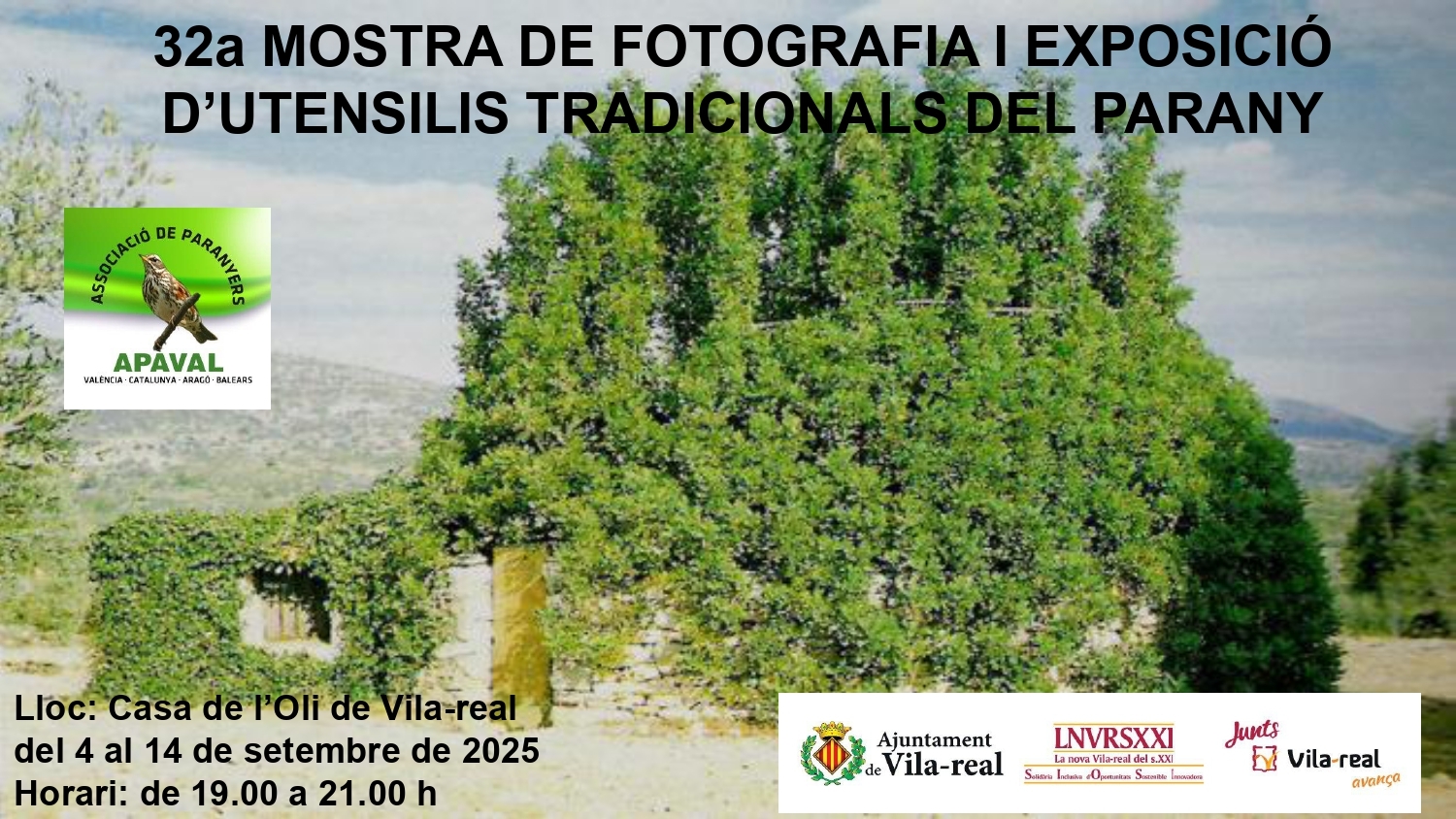 Del 4 al 14 de septiembre de 2025, se podrá visitar, en la Casa de l'Oli, la 32.ª Muestra de fotografía y exposición de utensilios tradicionales del parany, a cargo de la Associació de Paranyers Apaval.